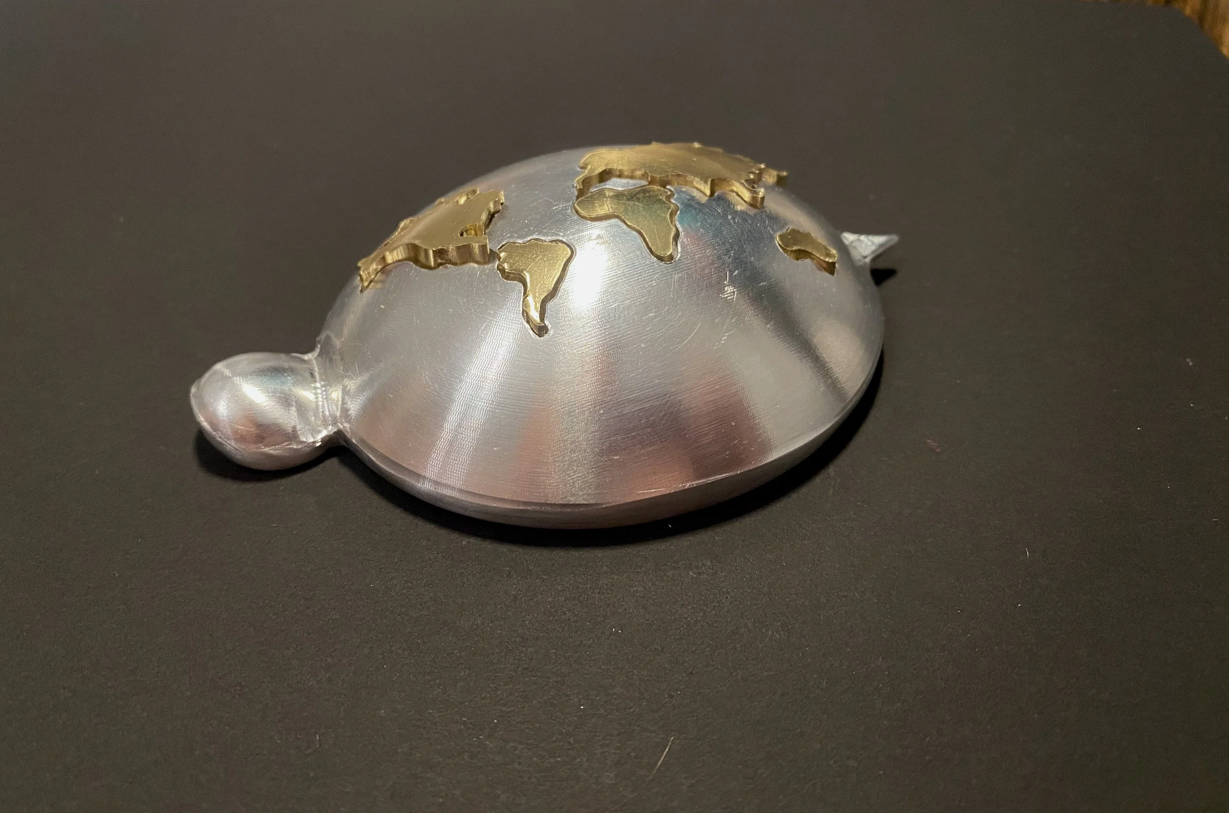 A 6 part puzzle with pieces and turtle body made on the CNC. Workholding process included tabs and wax to machine intricate details and geometries.